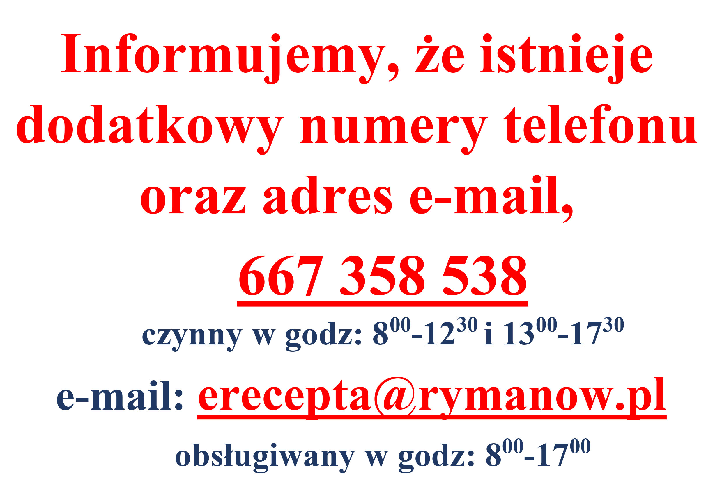 Rymanów: Podstawowa Opieka Zdrowotna: tel. 13 43 55 004