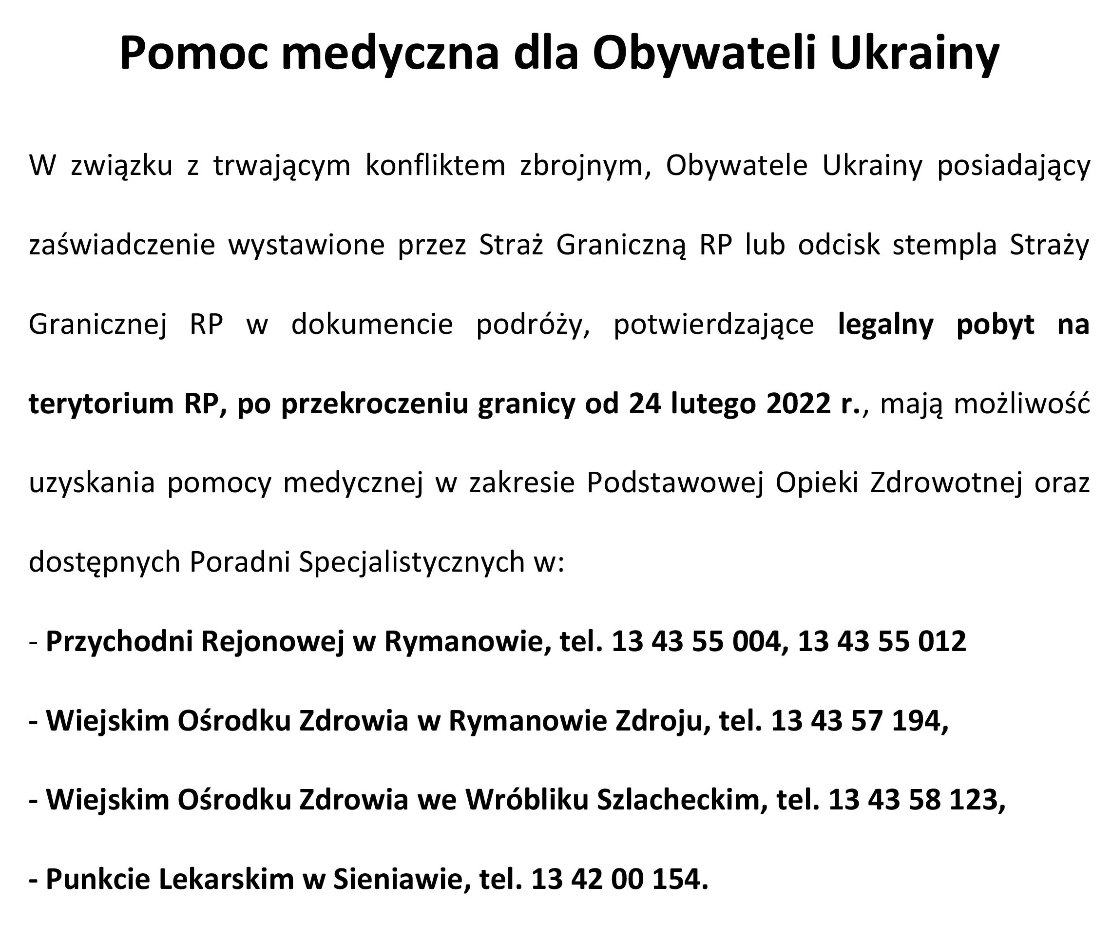 Pomoc medyczna dla Obywateli Ukrainy