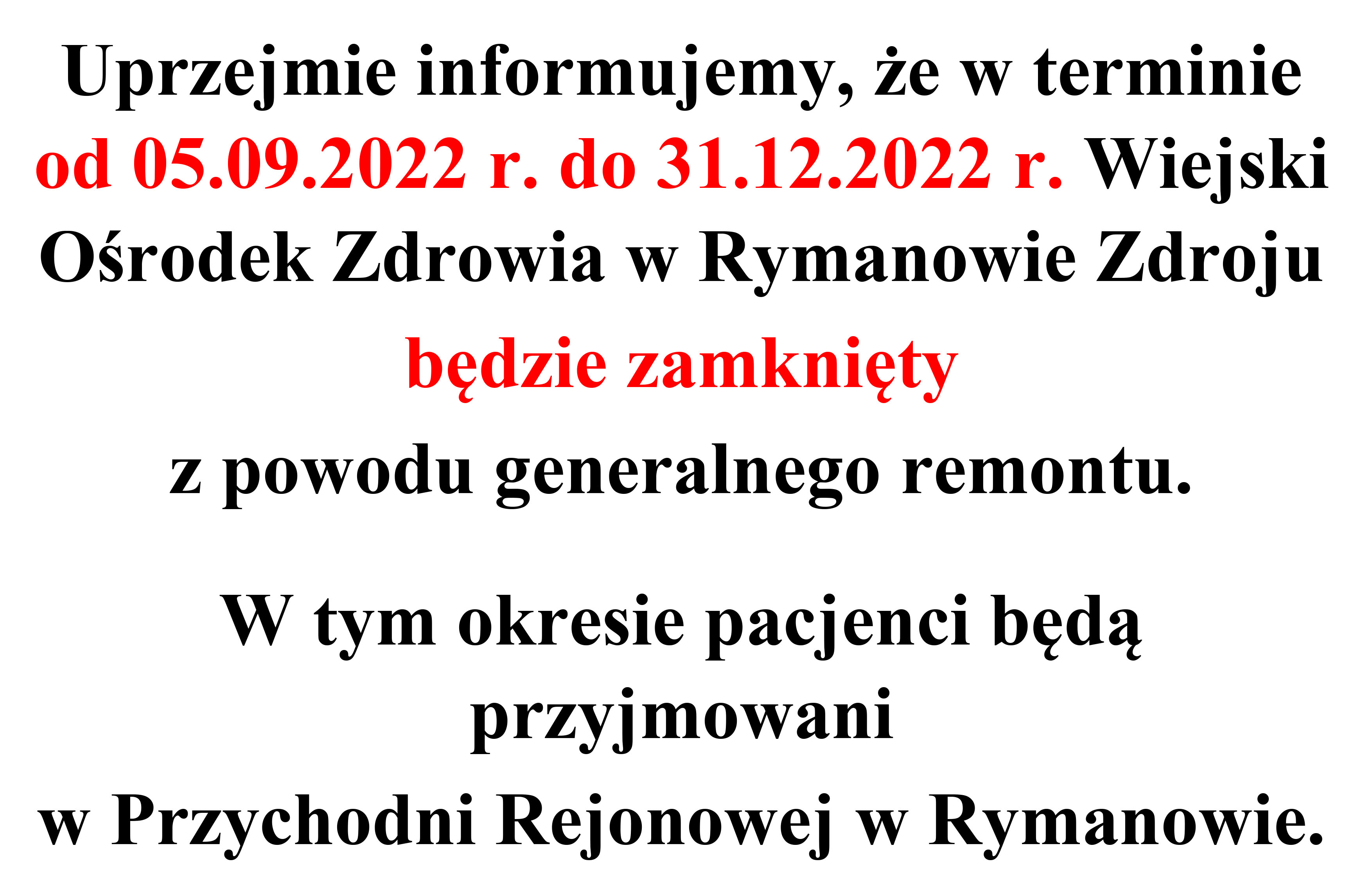 Wiejski Ośrodek Zdrowia w Rymanowie Zdroju - Nieczynny!