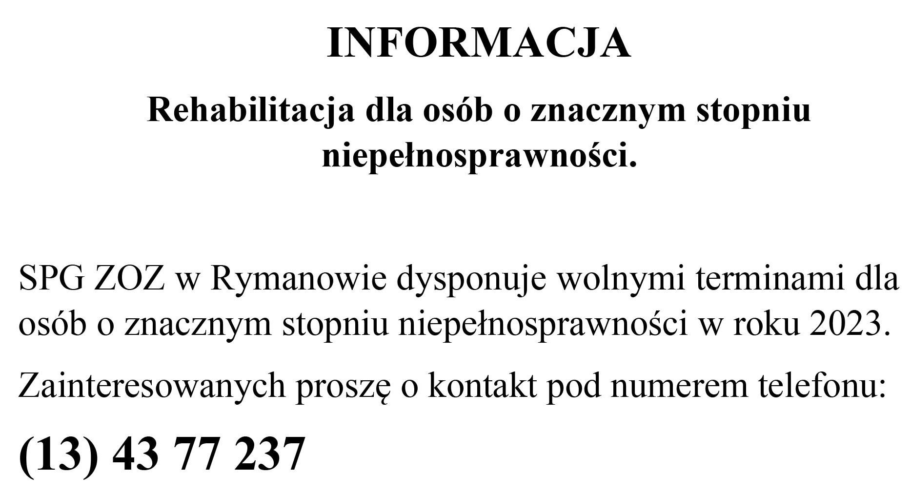 Wróblik Szlachecki: Podstawowa Opieka Zdrowotna: tel. 13 43 58 123 |