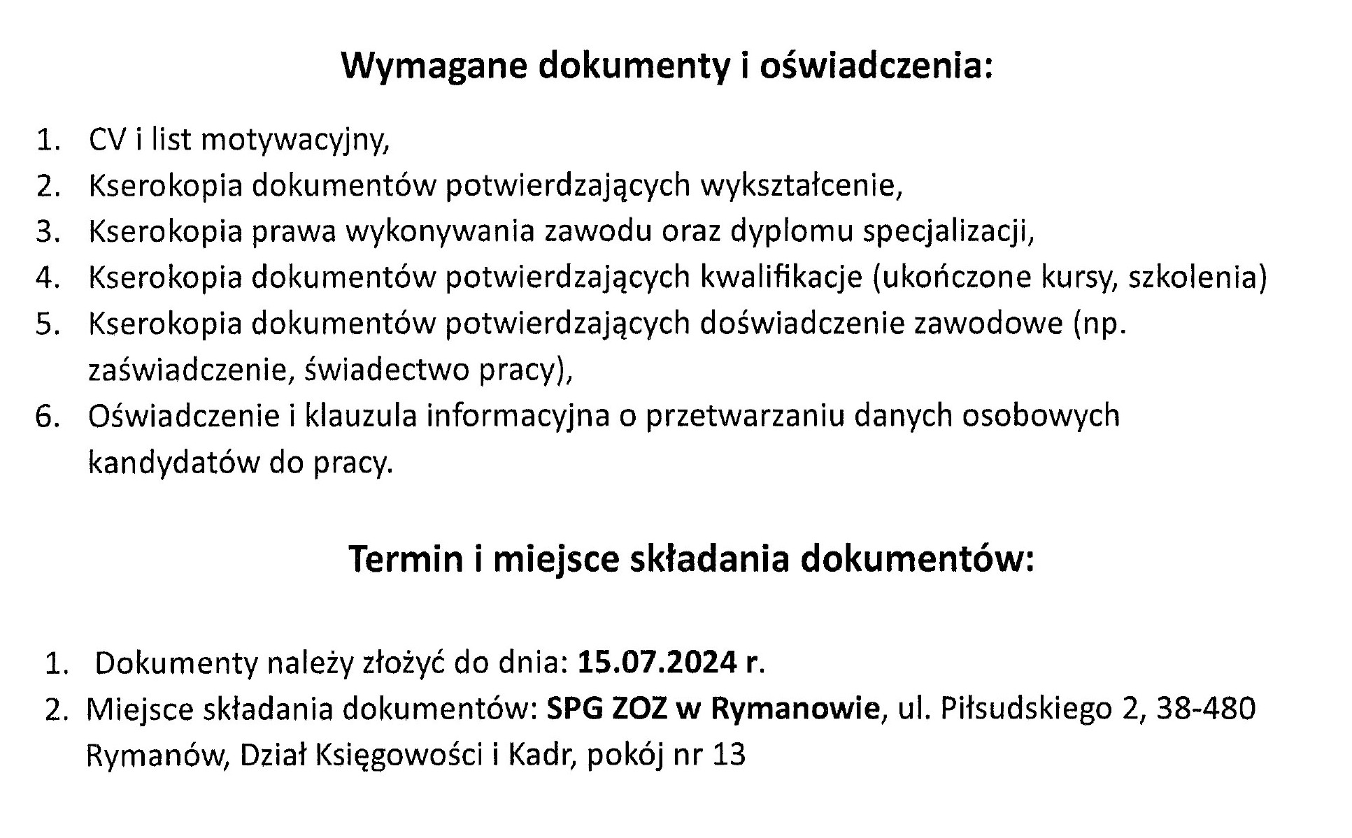 Samodzielny Publiczny Gminny Zakład Opieki Zdrowotnej w Rymanowie | ul. Piłsudskiego 2, 38-480 Rymanów tel. 13 43 55 004